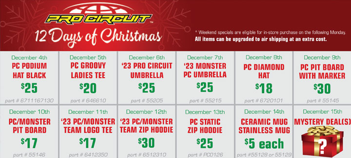 All products manufactured and/or distributed by Pro Circuit Products, Inc. are offered and designed for use with standard machines. Pro Circuit Products, Inc. makes no claims as to the products effectiveness on modified machines. Pro Circuit Products, Inc. is the sole determiner of abuse, misuse, installation errors and modifications. We assume no liability for any errors in listings, specifications, part numbers, prices or model applications. Pro Circuit Products, Inc. reserves the right to change specifications, product descriptions, product quality, pricing and model applications at any time without prior oral or written notice and without further obligation.