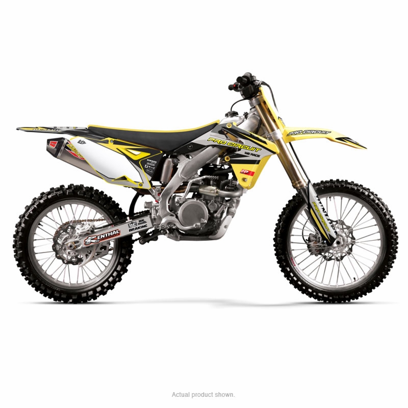 Heavy-duty clear vinyl is used for all sticker components and has a self-adhesive backing for easy installation. The Pro Circuit Suzuki graphic kit is a way to add a fresh new look to your bike for the 2016 racing year.