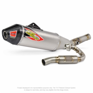 The Ti-6 Titanium Exhaust System is designed to improve performance and is constructed of titanium throughout the head pipe, mid pipe, and canister while the end-cap is constructed of carbon fiber. The Ti-6 is ideal for any closed-course or off-road racer looking for improved performance, durability and a professional look. Although the Ti-6 will not pass FIM sound requirements seen in professional racing here in the states or in Europe, the Ti-6 will meet AMA amateur noise requirements, and comes equipped with a removable USFS approved spark arrestor making it easy for riders to alternate between off-road and closed-course racing.