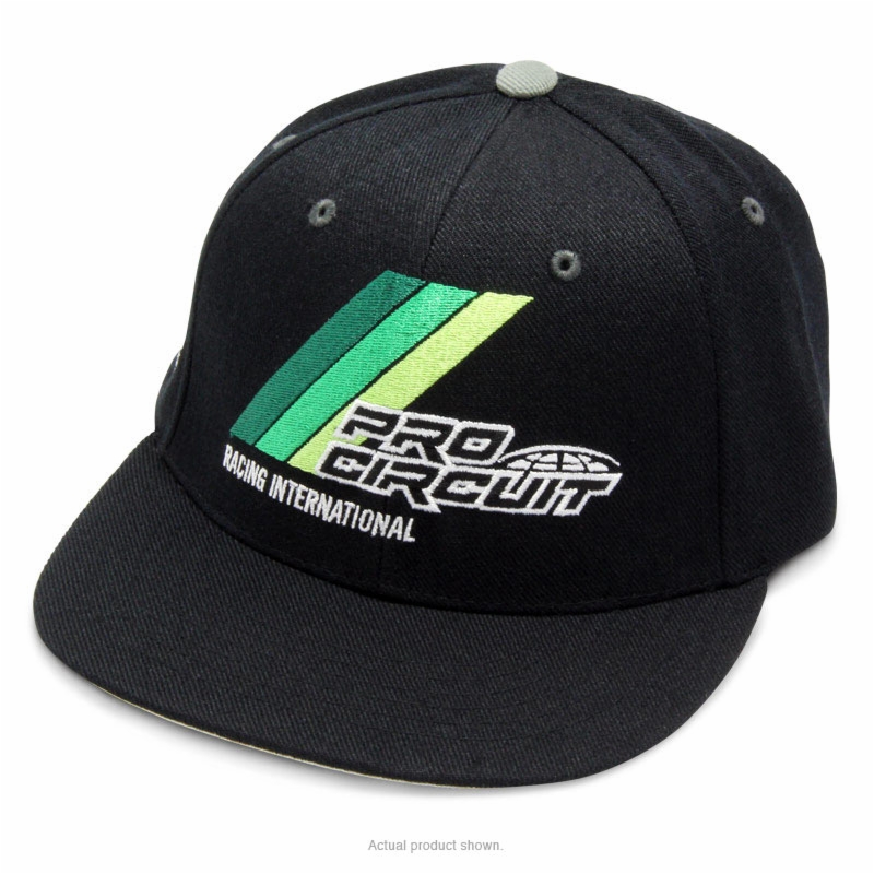 One of two race inspired hats recently added by Pro Circuit, the Accelerator hat is a perfect accessory to top off your look. This hat features quality embroidered Pro Circuit logos and graphics on the front as well as the "stacked" Pro Circuit logo embroidered on the wearer's right side.