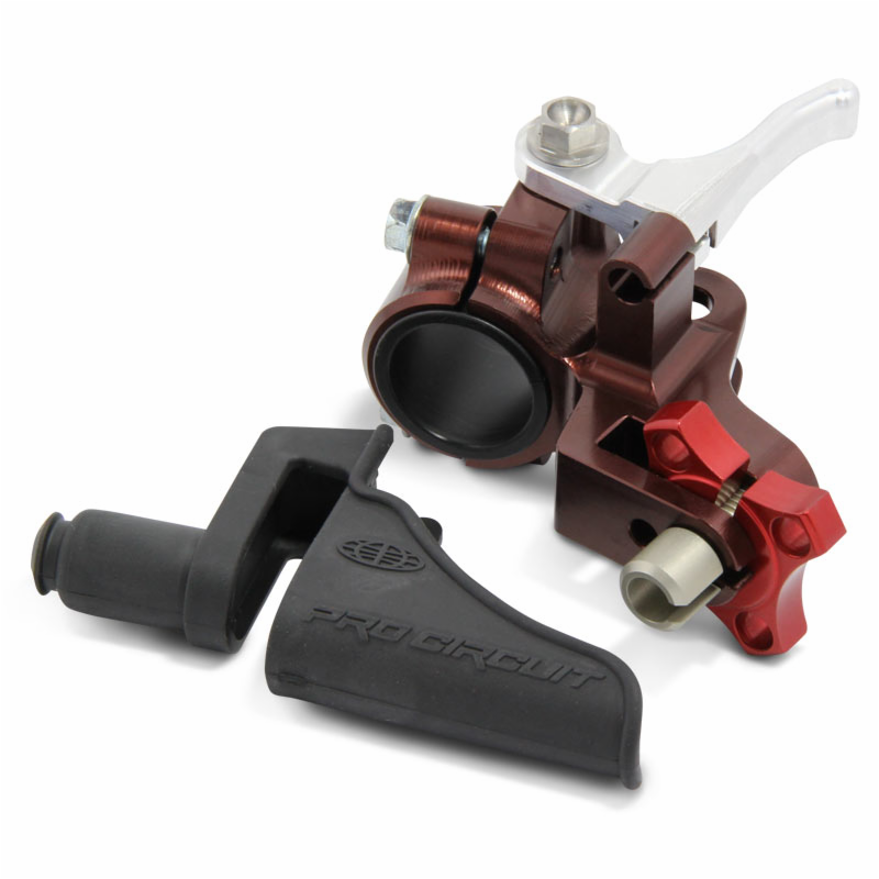 Pro Circuit clutch perches feature a threaded on-the-fly adjuster for a precise one-handed cable adjustment. The Teflon bushing allows the lever to twist on the bar instead of breaking in a fall.