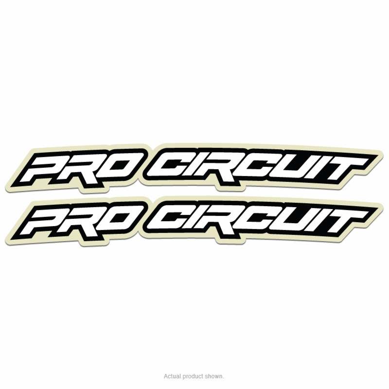 These front fender decals are designed with less curve to fit the straighter front fenders seen on newer dirt bike models. Pro Circuit front fender decals are 12 mil. thick vinyl decals with a super-sticky backing - perfect way to add style to your bike!