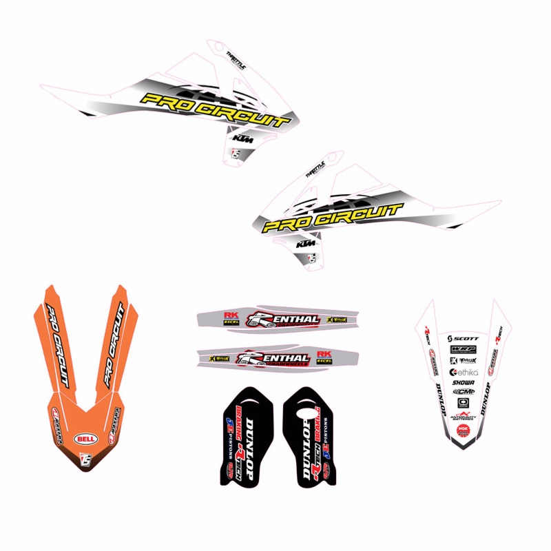 Interested in making your 2018-2023 KTM85 look like one of our race team bikes? Each kit includes high-quality digitally printed graphic decals for front and rear fenders, front fender curved decals, shroud decals, fork guard decals, swingarm decals and extra sponsor decals for fenders and tank.