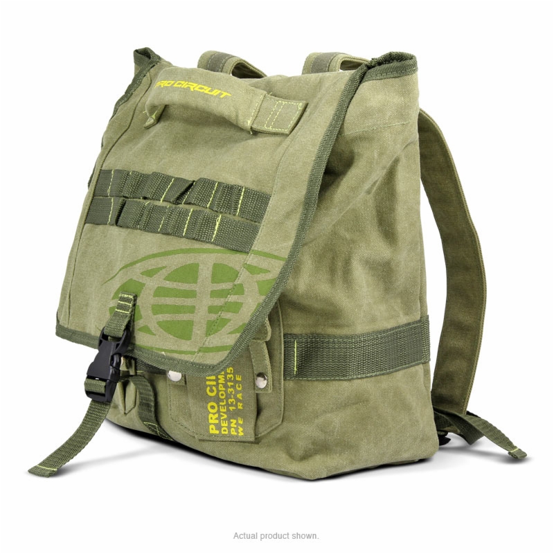 Pro Circuit's passion for providing their customers with the best products does not stop at exhaust systems or engine performance parts, it keeps going all the way to rider accessories, and the Pro Circuit Ruck Sack is a fine example of just that. This military-inspired canvas ruck sack is perfect for packing all of your everyday essentials for heading out to the track, to school, or even for a hike. Constructed of a strong cotton canvas and embellished with Pro Circuit logos screen printed on the front, this bag may have a vintage feel, but it is built for the modern day moto fanatic.