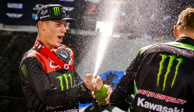 "After all the ups and downs this season,it just feels really good to finish second overall in the series," said Hammaker. "To end the year on the podium in Vegas is a great way to close things out, and it gives me a lot of confidence heading into next year. Now it's time to rest up, keep building, and stay true to the plan - I know my time will come. I can't thank everyone enough at Monster Energy Pro Circuit Kawasaki, my family, and everyone at the Dog Pound. And of course, a huge thank you to all the fans who come out and support us. Let's go!"