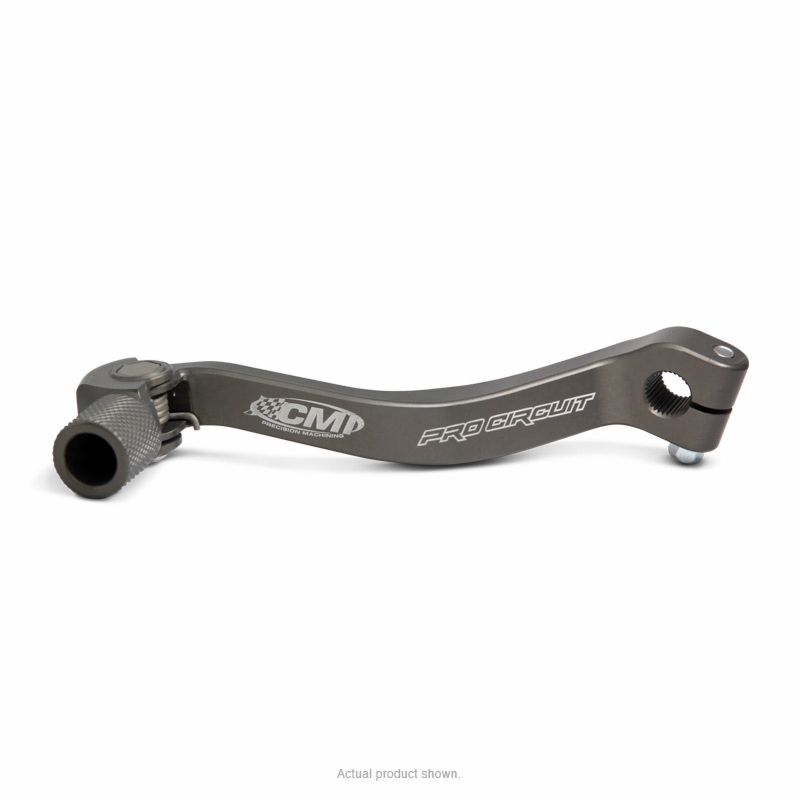 Built to meet the rigorous demands of motocross, the Pro Circuit shift lever is CNC-machined from aircraft quality billet aluminum for strength, hard anodized for durability and comes with stainless steel spring hardware that resists corrosion. The free-folding, knurled tip design helps prevent dirt clogging and is replaceable.