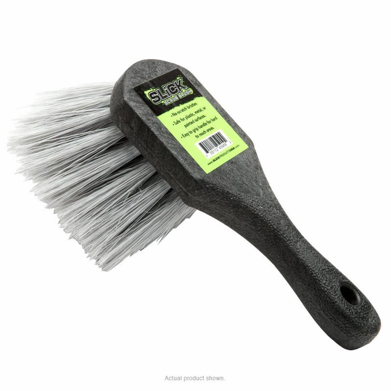 Slick Scrub Brush is carefully made with no-scratch soft bristles making it safe for use on plastic, metal, and painted surfaces. The brush is designed with a durable easy to grip handle allowing access to hard to reach areas.