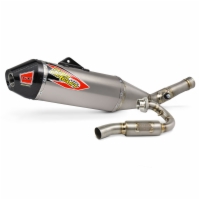 The Ti-6 Titanium Exhaust System is designed to improve performance and power where the Ti-5 showed weak points. Constructed of titanium throughout the head pipe, mid pipe and canister, this is the ideal exhaust for any off-road or closed course racer looking for improved performance, durability and a professional look. The Ti-6 system comes with a removable United States Forest Service (USFS) Approved Spark Arrestor making it easy to alternate between off-road and closed course riding.