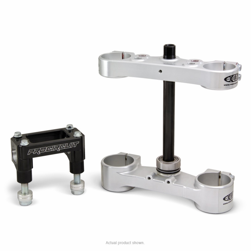 The clear anodized finish gives the Pro Circuit KTM Triple Clamps a works look, and creates a durable finish that helps retain the like-new luster. The legendary Pro Circuit Race Team currently uses the same design on its championship-winning machines.