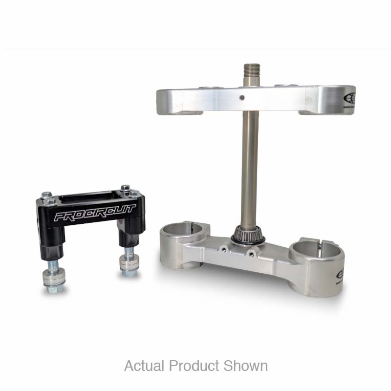 The clear anodized finish gives the Pro Circuit KTM Triple Clamps a works look, and creates a durable finish that helps retain the like-new luster. The legendary Pro Circuit Race Team currently uses the same design on its championship-winning machines.